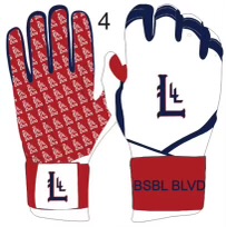 CUSTOM LIVERMORE LITTLE LEAGUE BATTING GLOVES- NAVY, WHITE AND RED